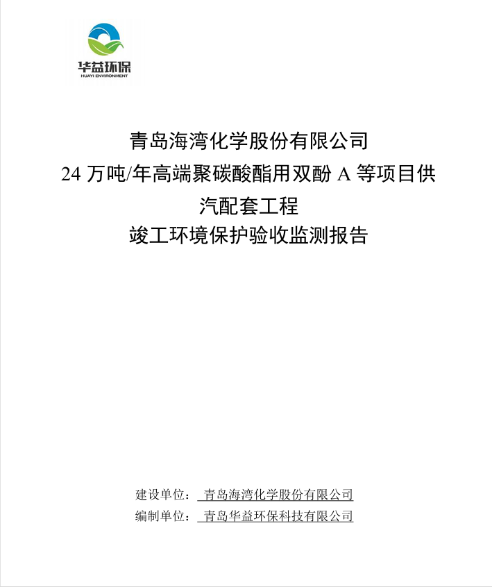 24萬噸高端聚碳酸酯用雙酚A等項目配套供汽工程項目竣工環保驗收監測報告 -公示版_青島南通安振设备制造集团